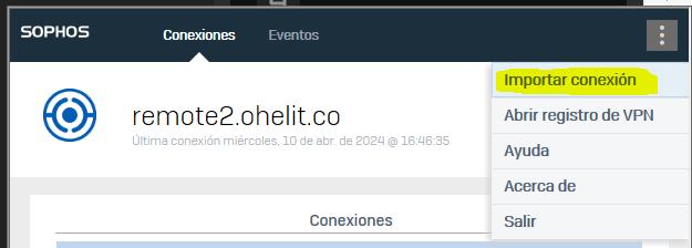 - Importar el archivo de configuración (previamente descargado), en el portal de VPN.